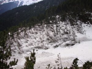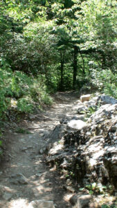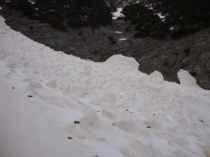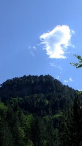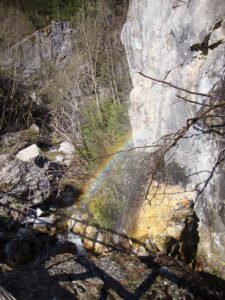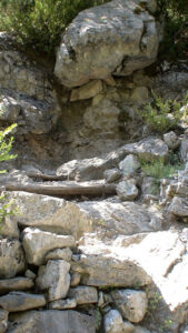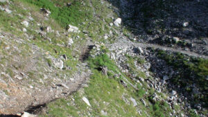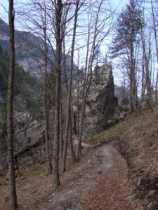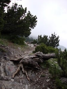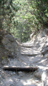 At roughly the two-thirds point, the path emerges from the forest into a more open section. From here, a series of zig-zags leads up to the final location of the refuge. At this stage, the refuge becomes visible high above, set dramatically on a rocky outcrop. This final stretch can feel demanding, particularly as fatigue sets in, and during the summer months it is fully exposed to the sun. Adequate hydration and sun protection are essential, as ultraviolet exposure is stronger at altitude.