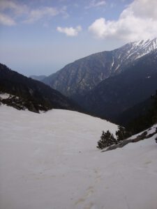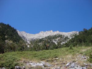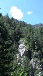 Prionia is the highest point on Olympus that can be reached by car, located approximately 18 kilometres from Litochoro, and offers designated parking areas. This is also where the Enipea River springs originate. A café-restaurant operates here throughout the year, making Prionia a natural starting point and gathering place for hikers. Most of the ascent from this point takes place within dense forest.