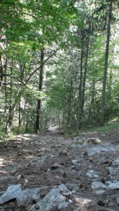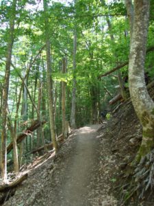 The trail itself is well maintained and clearly marked. Thick stands of pine are interwoven with beech and fir trees, creating a particularly attractive and shaded environment for much of the walk. Along the route there are several natural viewpoints, as well as two convenient rest areas located at approximately one-third and two-thirds of the total distance. These are suitable places for short breaks, and visitors are kindly reminded to take all litter with them.