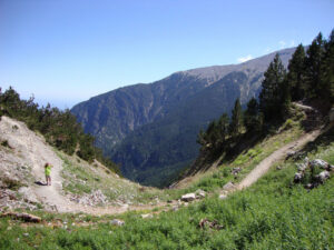 The route from Prionia at 1,100 metres to Spilios Agapitos Refuge at 2,100 metres is the most frequently used hiking path on Mount Olympus and forms part of the European long-distance E4 trail. It continues the well-known Litochoro–Prionia route and serves as the main access path to the higher sections of the mountain.