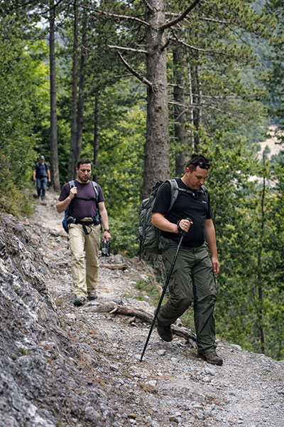 Olympus, like any mountain, can be deceptive in it’s appearance. For this reason, you should come prepared. Independent of the season, there is a need to drink water (more in the summer). You should consider a need to bring at least 2 litres per person, for the walk up from Prionia to “Spilios Agapitos” (Refuge A). The weather can be changeable, so always think to bring some water-proof clothing, and at night (at altitude) the temperature get very cold. So also bring warm clothing of some kind. Again, depending on the season, the type of shoes you wear can be important. It is advised that they are comfortable, but strong enough for the rugged terrain and paths.